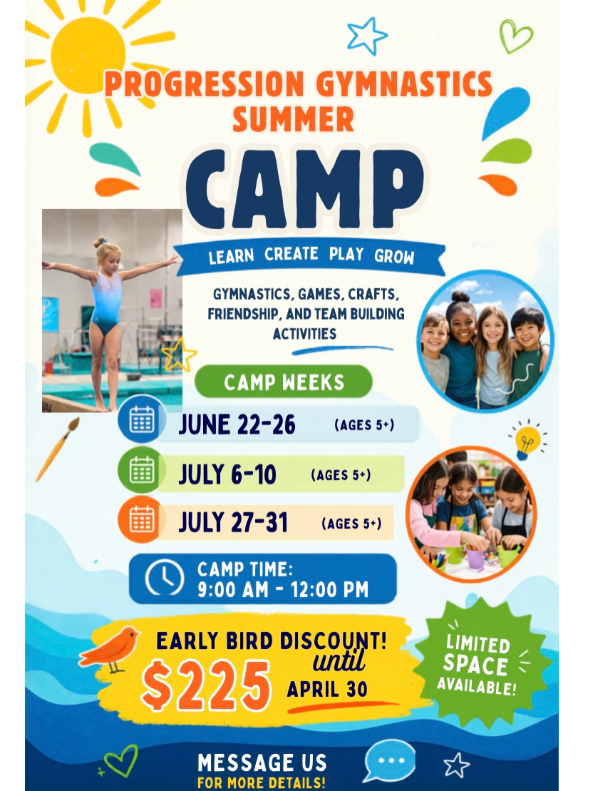 Thank you for visiting Progression Gymnastics! At this time, we have a waitlist for most of our classes. To get on the waitlist, please send us your name, phone number, your child’s age and birthday, and any scheduling restrictions. As spots open up, we will work our way down the waitlist in order of the date the inquiry was received and offer spots in age appropriate classes (we are not taking specific class requests at this time). Please check our F.A.Q.’s page for more information on our waitlist process. Students ages 6+ may register for Friday Fun Nights and Camps, even if they are not yet enrolled in classes, as long as they pay the annual membership fee.